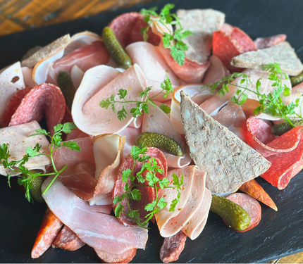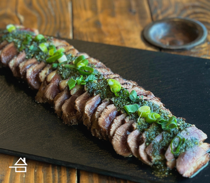 225gr - 450grTataki de magret de canard, servi froid, pesto de coriandre - Fait maison.
