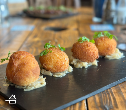 à l'unitéCroquette d'aligot, confit d'oignons - Fait maison.