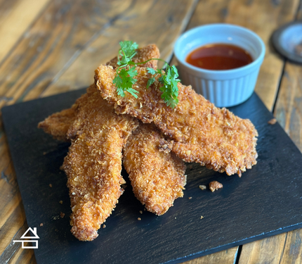 à l'unitéTenders de poulet maison, sauce aigre douce - Fait maison.